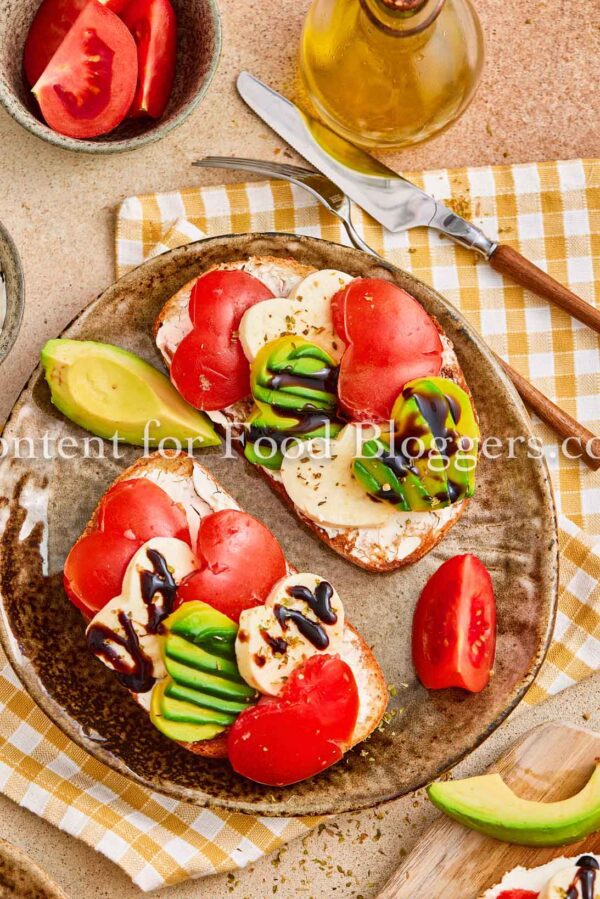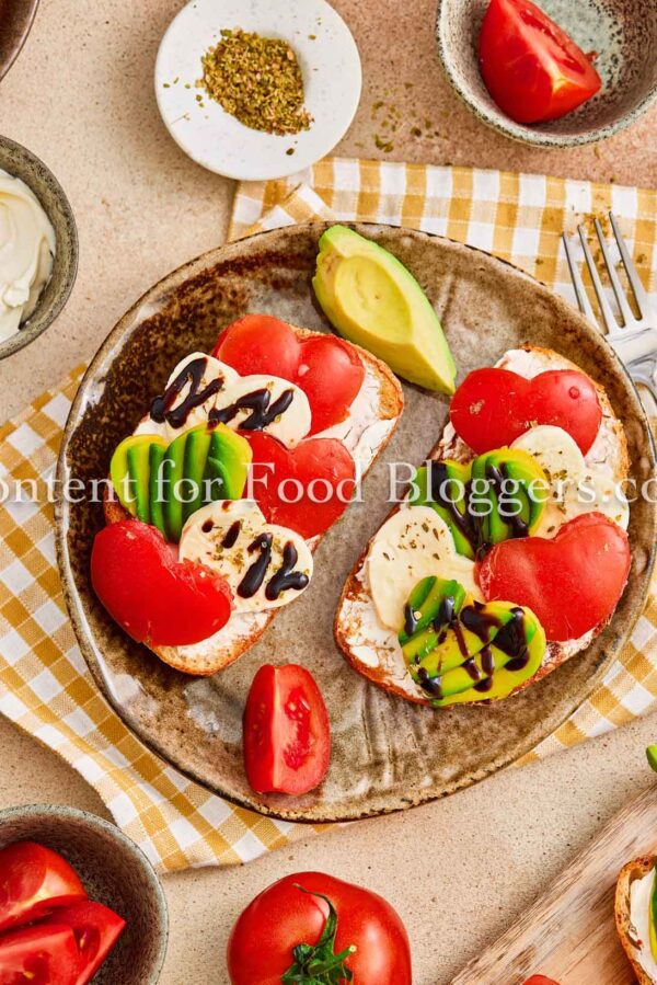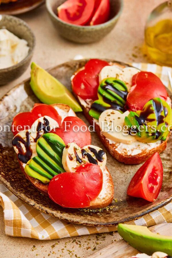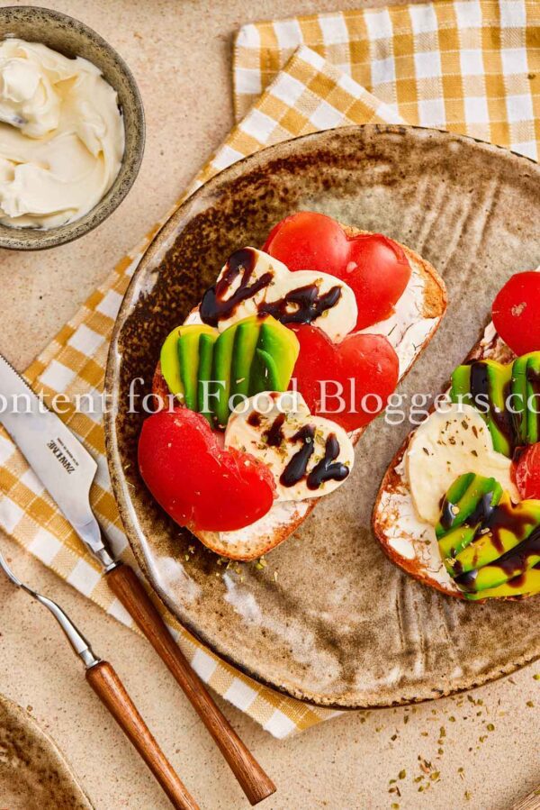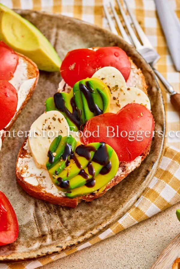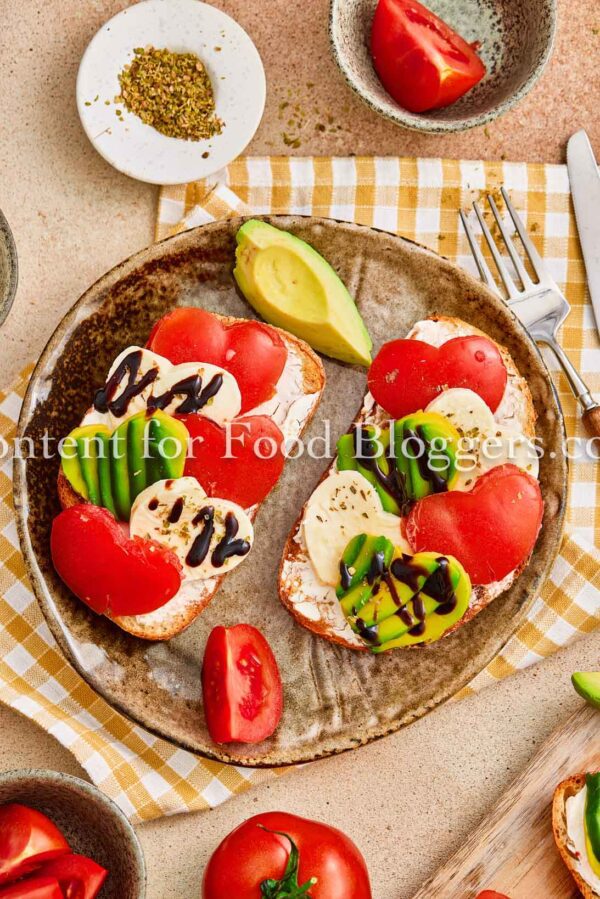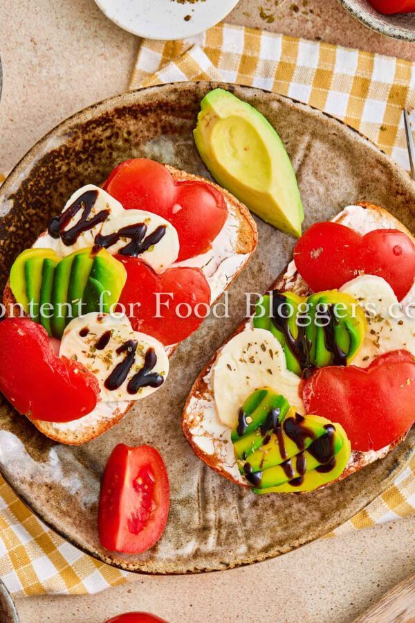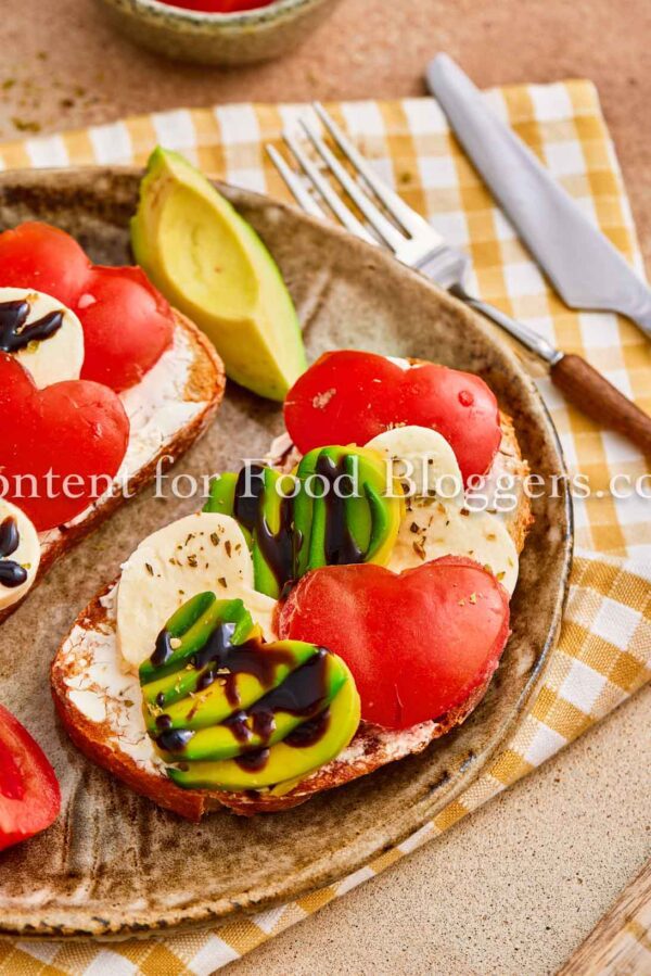 This Avocado Caprese Toast is a visually elevated twist on the classic caprese combination. Featuring heart-shaped avocado, mozzarella, and tomato layered over crispy bread with balsamic glaze, it’s perfect for Valentine’s content, spring brunch posts, or aesthetic breakfast features. The structured presentation and vibrant colors make this recipe highly shareable and ideal for Pinterest and seasonal roundups.