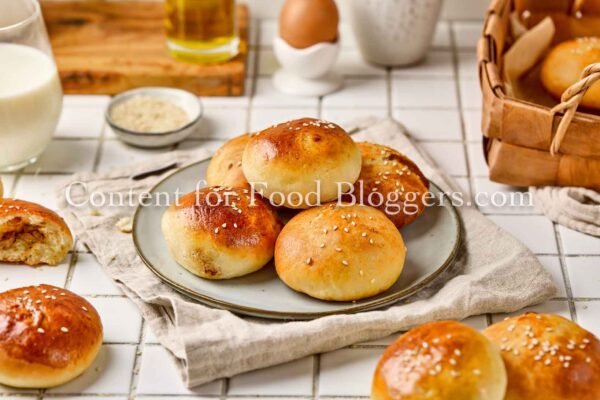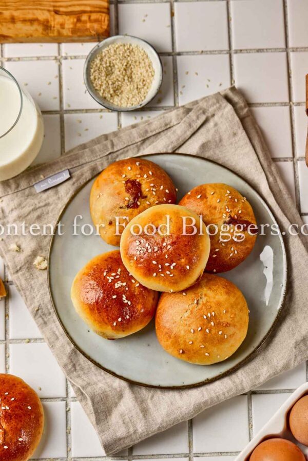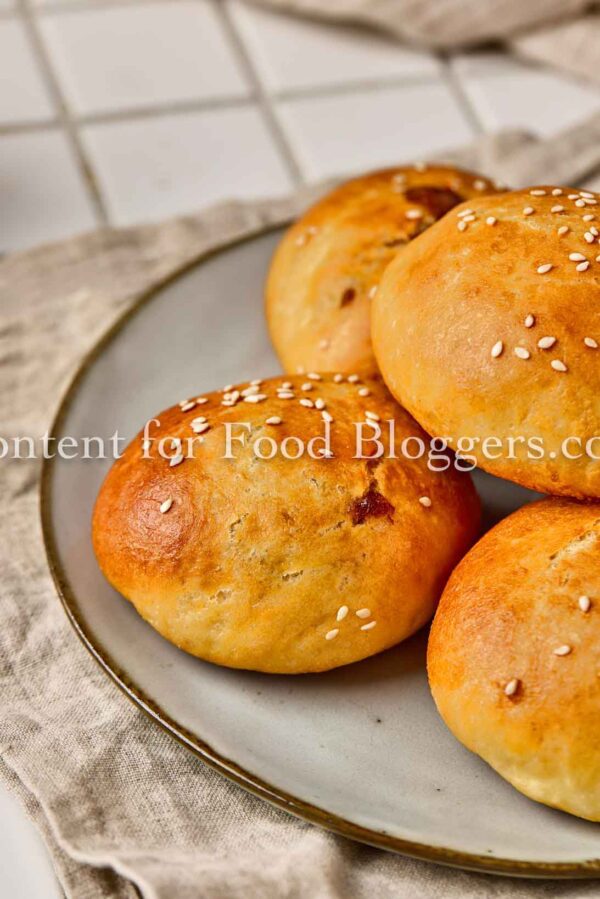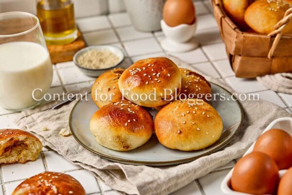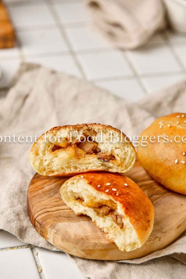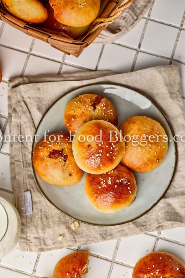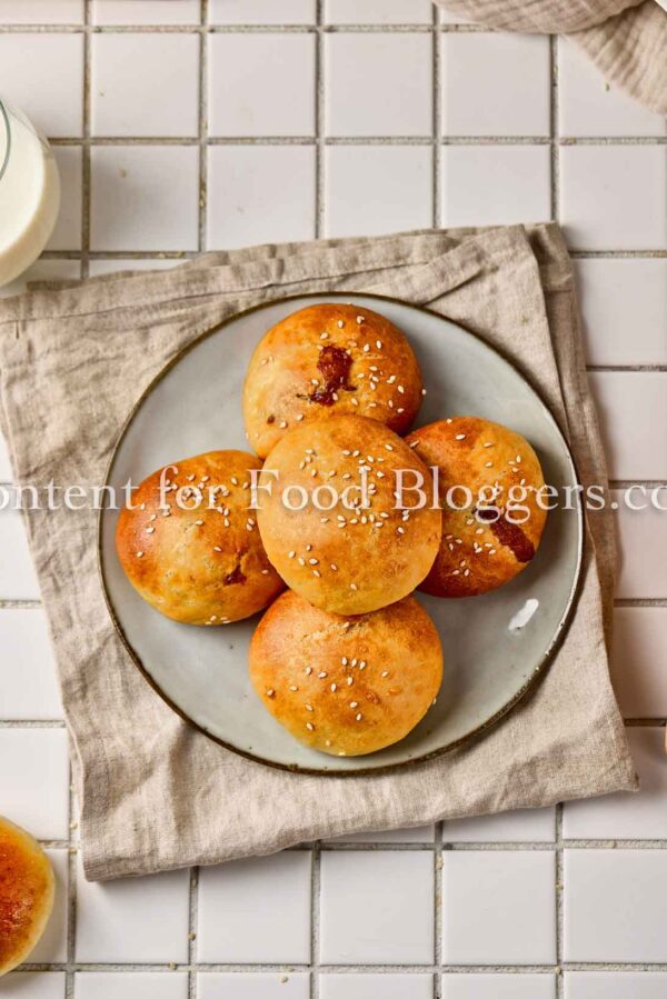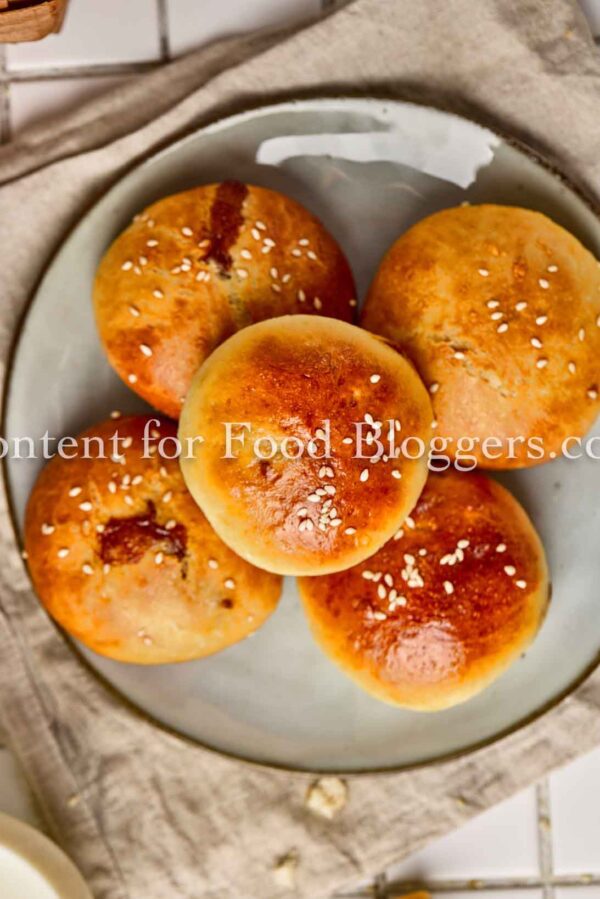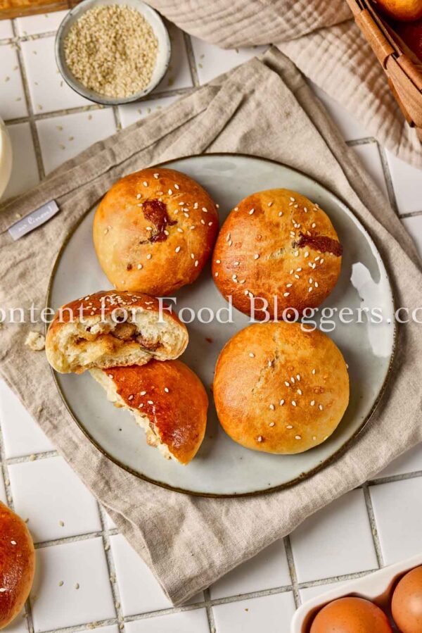 Soft, fluffy baked Chinese BBQ pork buns filled with sweet and savory char siu pork in a glossy sauce. These oven-baked bao are perfect for sharing and make a great alternative to steamed versions, with a golden, bakery-style finish.