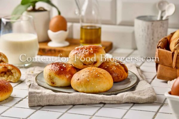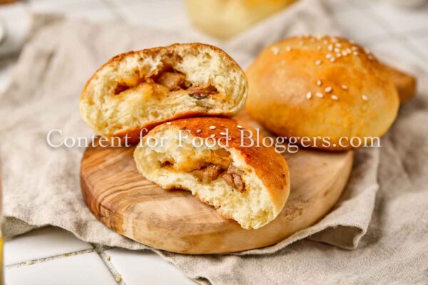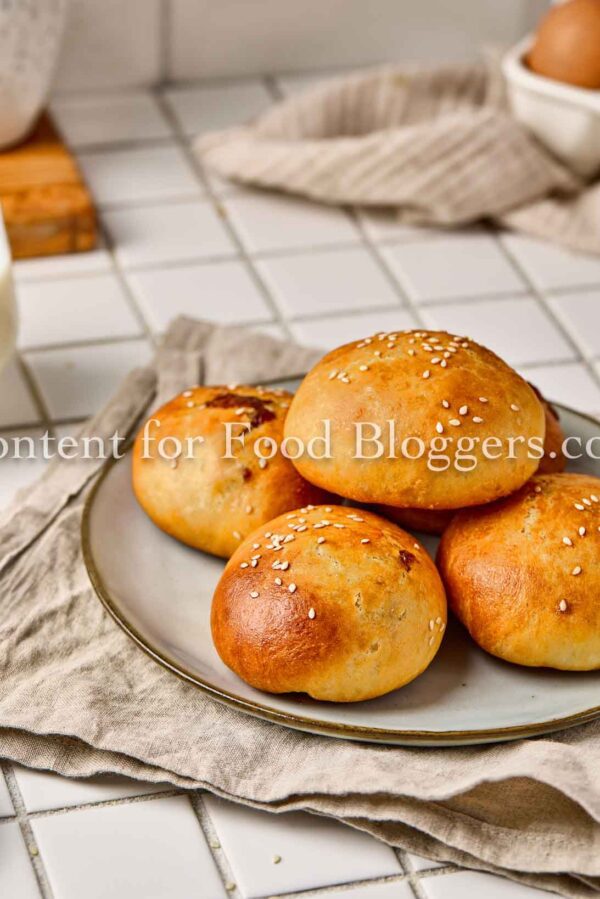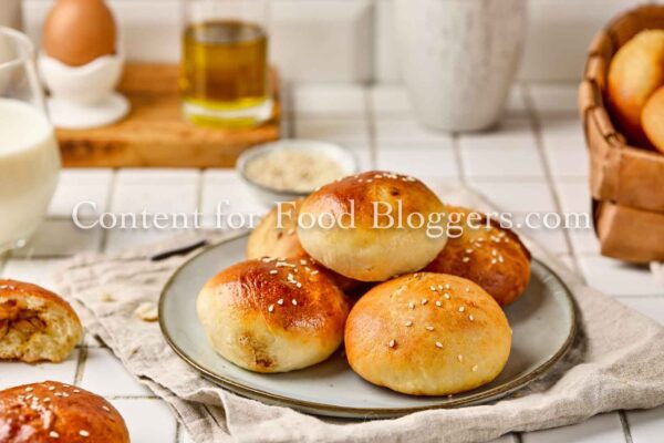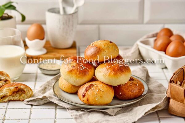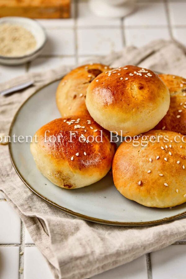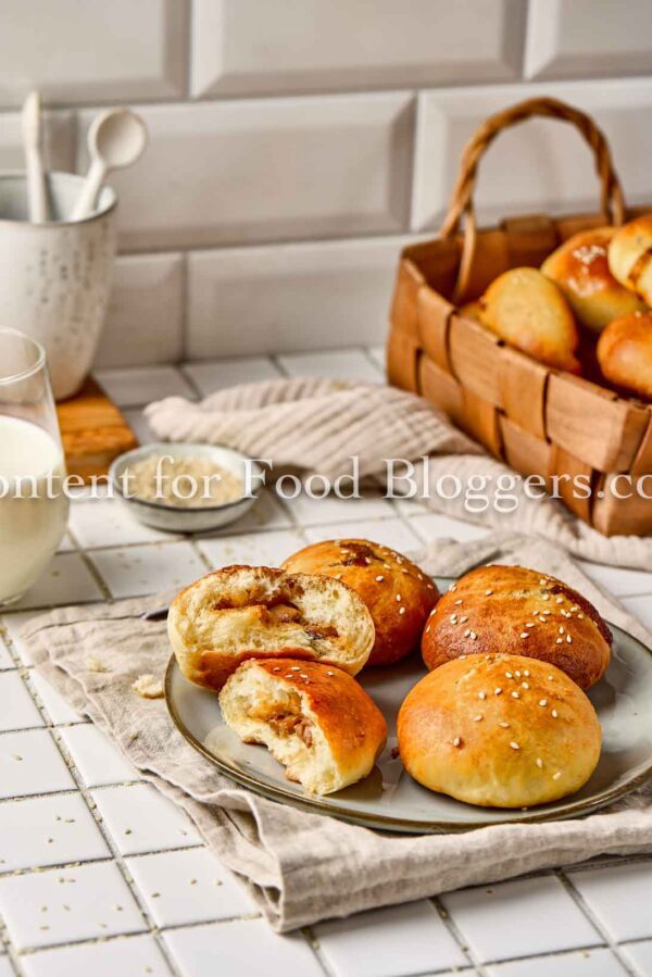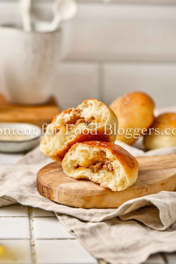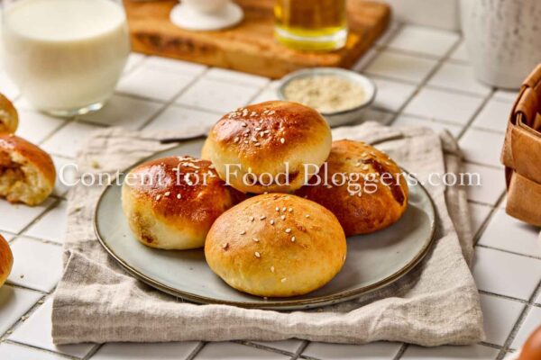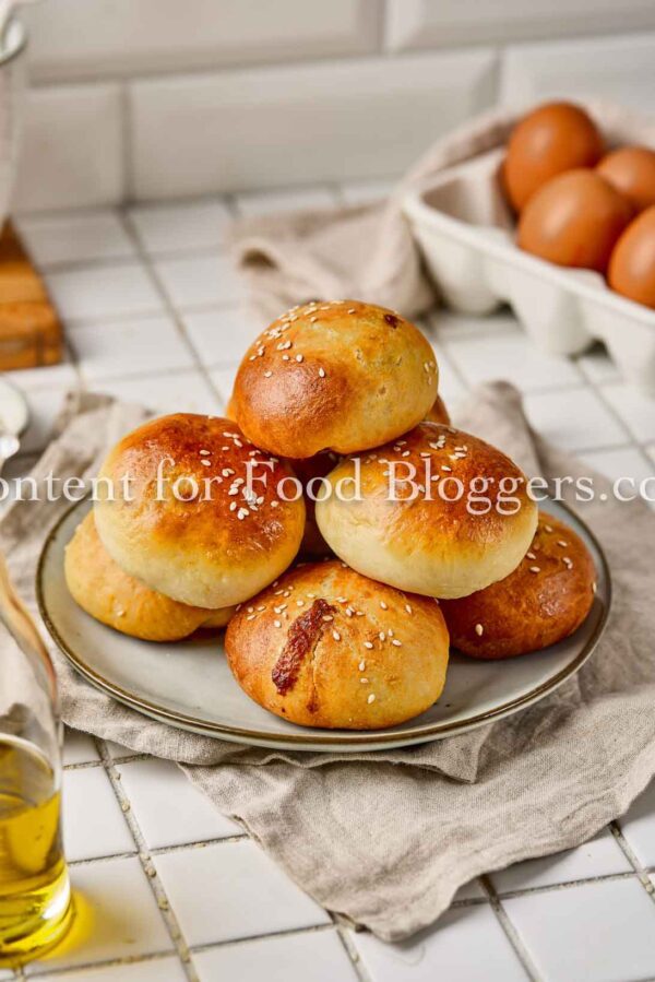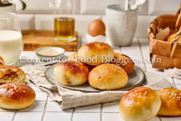 Soft, fluffy baked Chinese BBQ pork buns filled with sweet and savory char siu pork in a glossy sauce. These oven-baked bao are perfect for sharing and make a great alternative to steamed versions, with a golden, bakery-style finish.