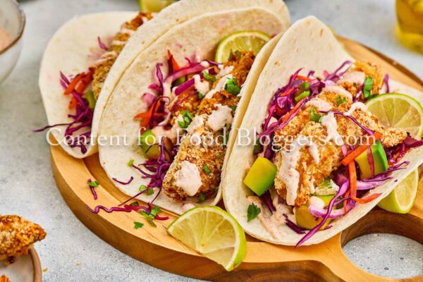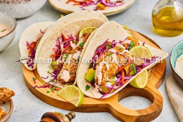 Bring a fresh, vibrant coastal vibe to your blog with these Crispy Fish Tacos. This exclusive recipe is a visual standout, featuring high-contrast colors from the creamy avocado slaw and perfectly golden-brown fish. It’s an ideal high-performance asset for dinner, healthy eating, and seafood niches, designed to drive engagement on Pinterest and Instagram with its professional, restaurant-quality aesthetic.