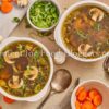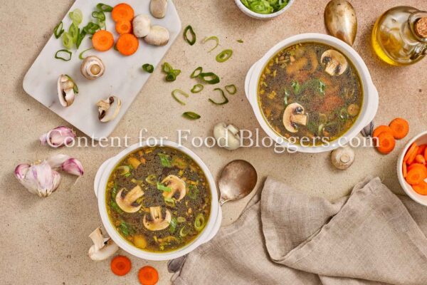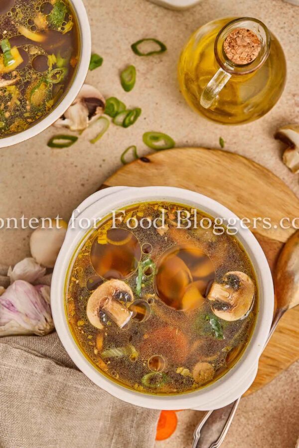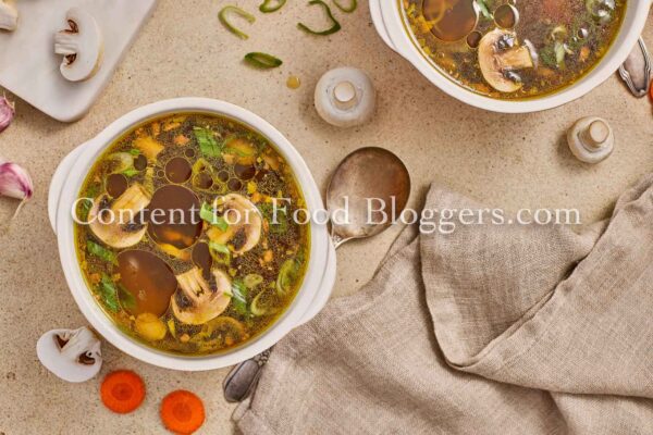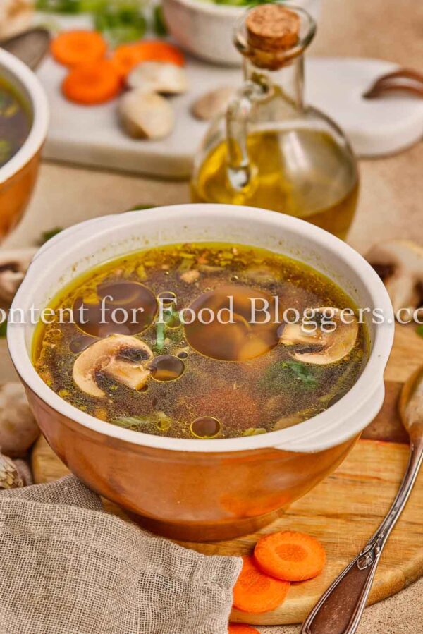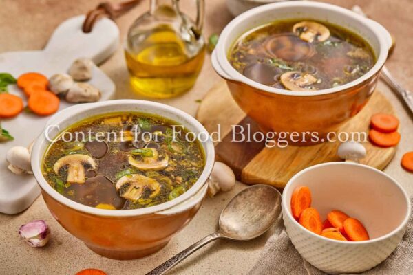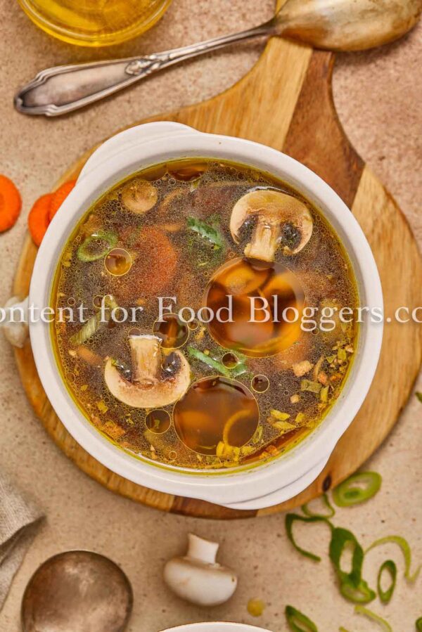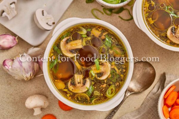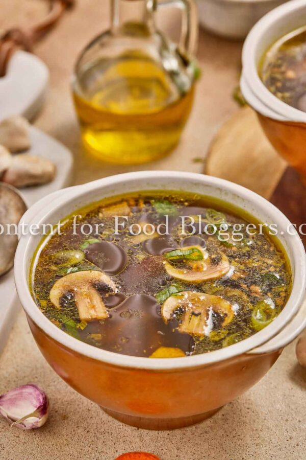A light, soothing clear soup with a flavorful broth base, tender vegetables, and mushrooms—finished with green onions for freshness. It’s simple, clean, and comforting, making it a perfect starter or easy warm-up meal.