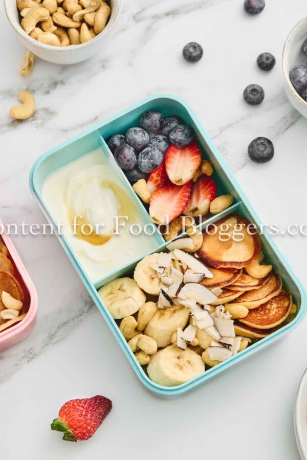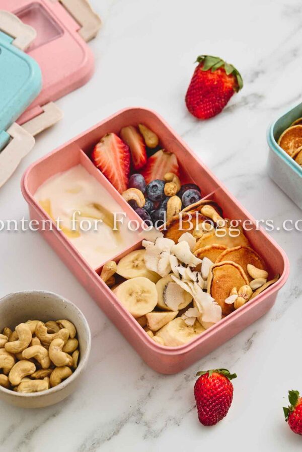 The “Breakfast for Lunch” trend is a massive traffic driver, and this Breakfast Lunchbox with Mini Pancakes & Fruit is the perfect visual asset to capture that audience. Featuring bright, high-contrast colors from fresh berries and a clean, organized layout, this recipe is designed to perform exceptionally well on Pinterest and Instagram. It’s an ideal feature for “Back to School” series, healthy kids’ meal planning, or simple meal prep content pillars.