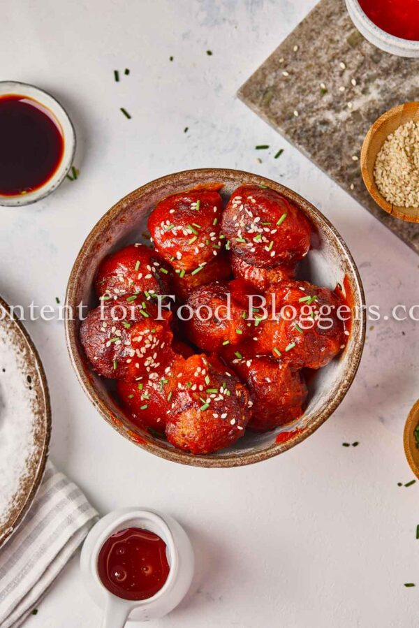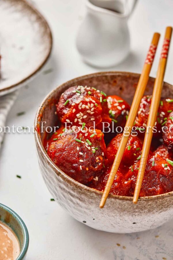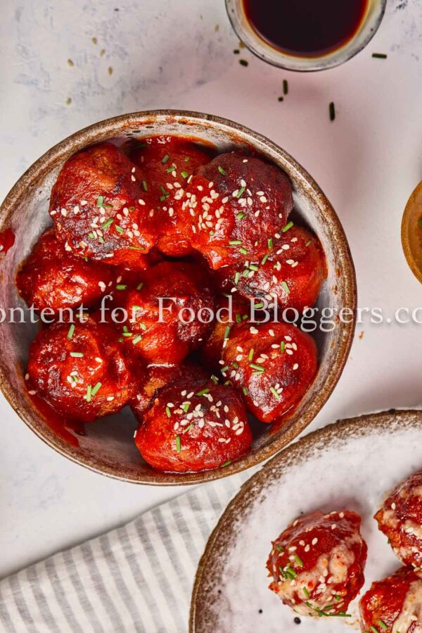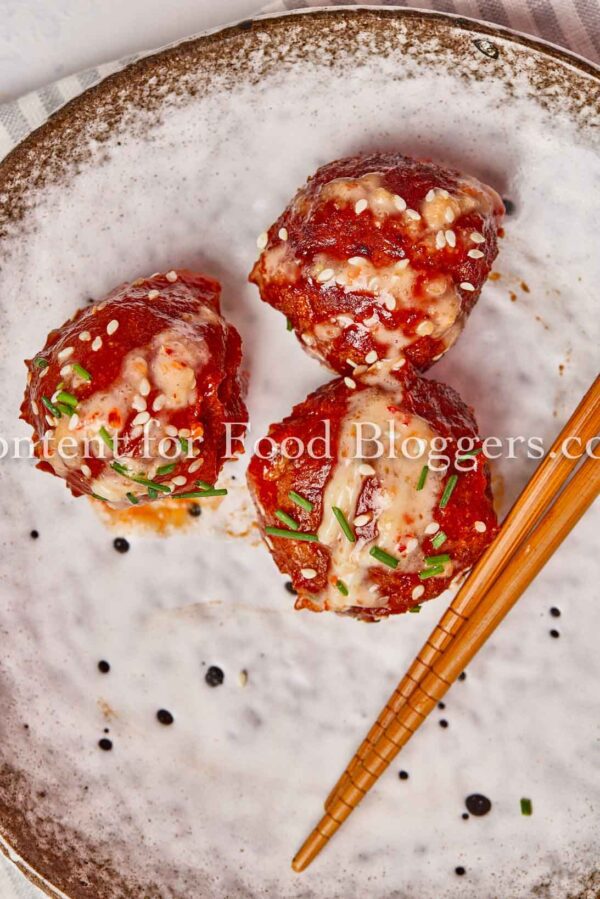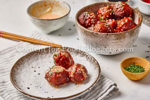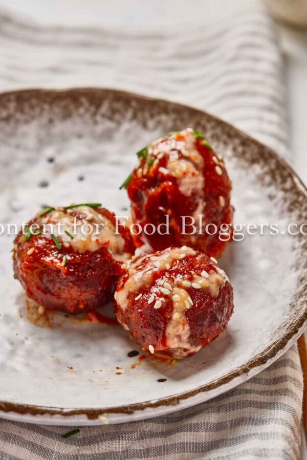 These juicy Korean BBQ meatballs are tossed in a glossy sweet-spicy glaze and served with a creamy spicy mayo dip. Great as cocktail bites, game-day snacks, or over rice for an easy dinner.