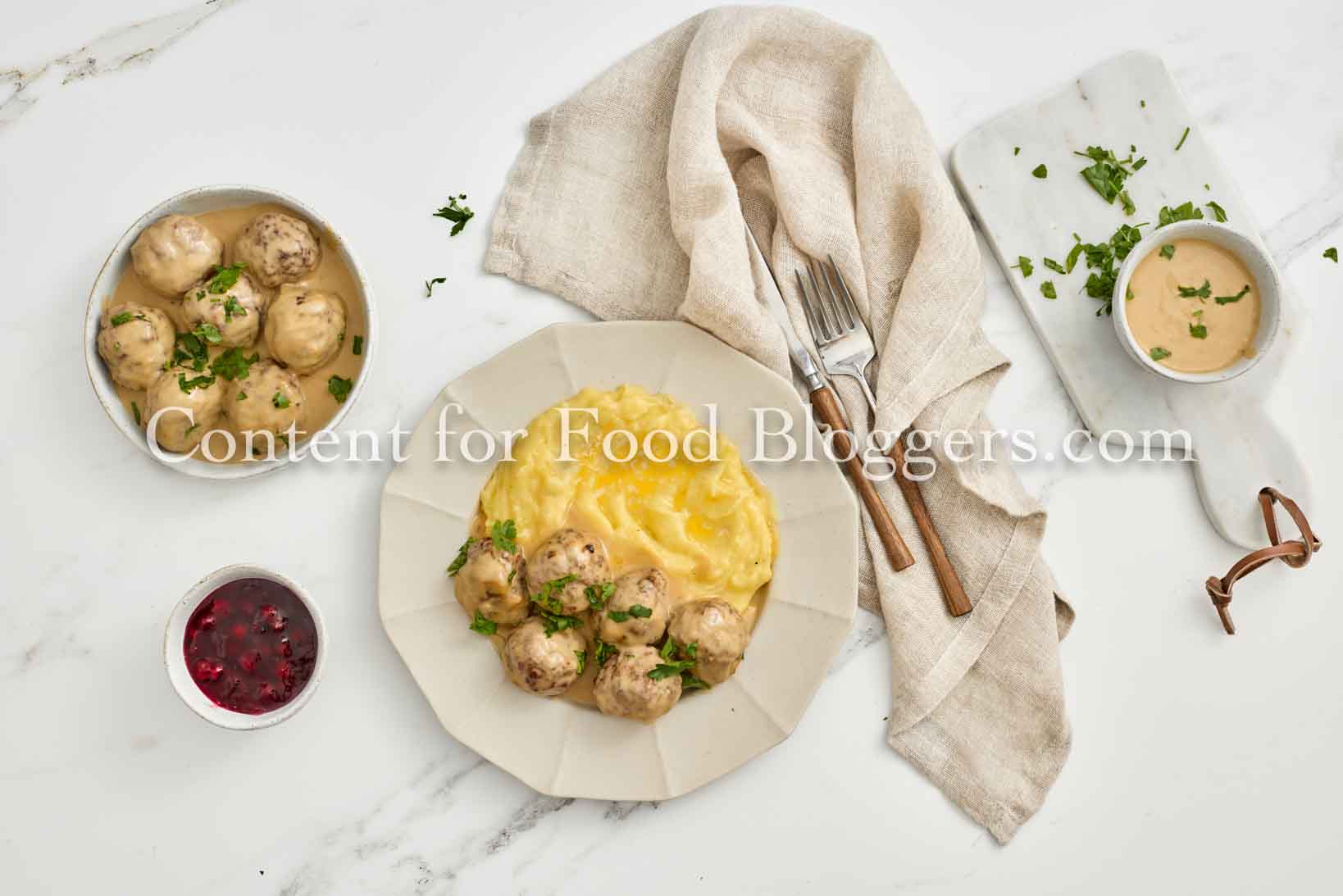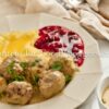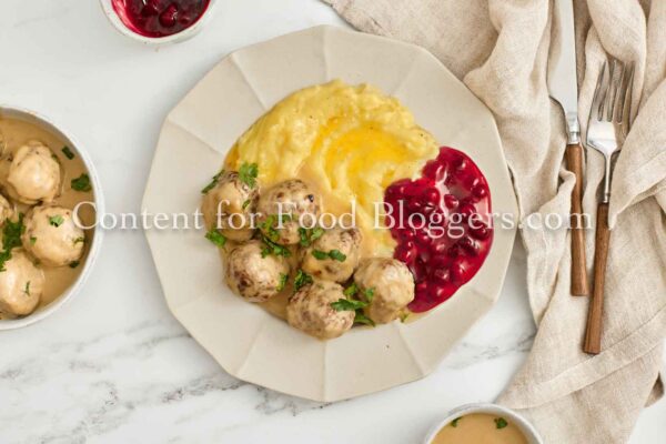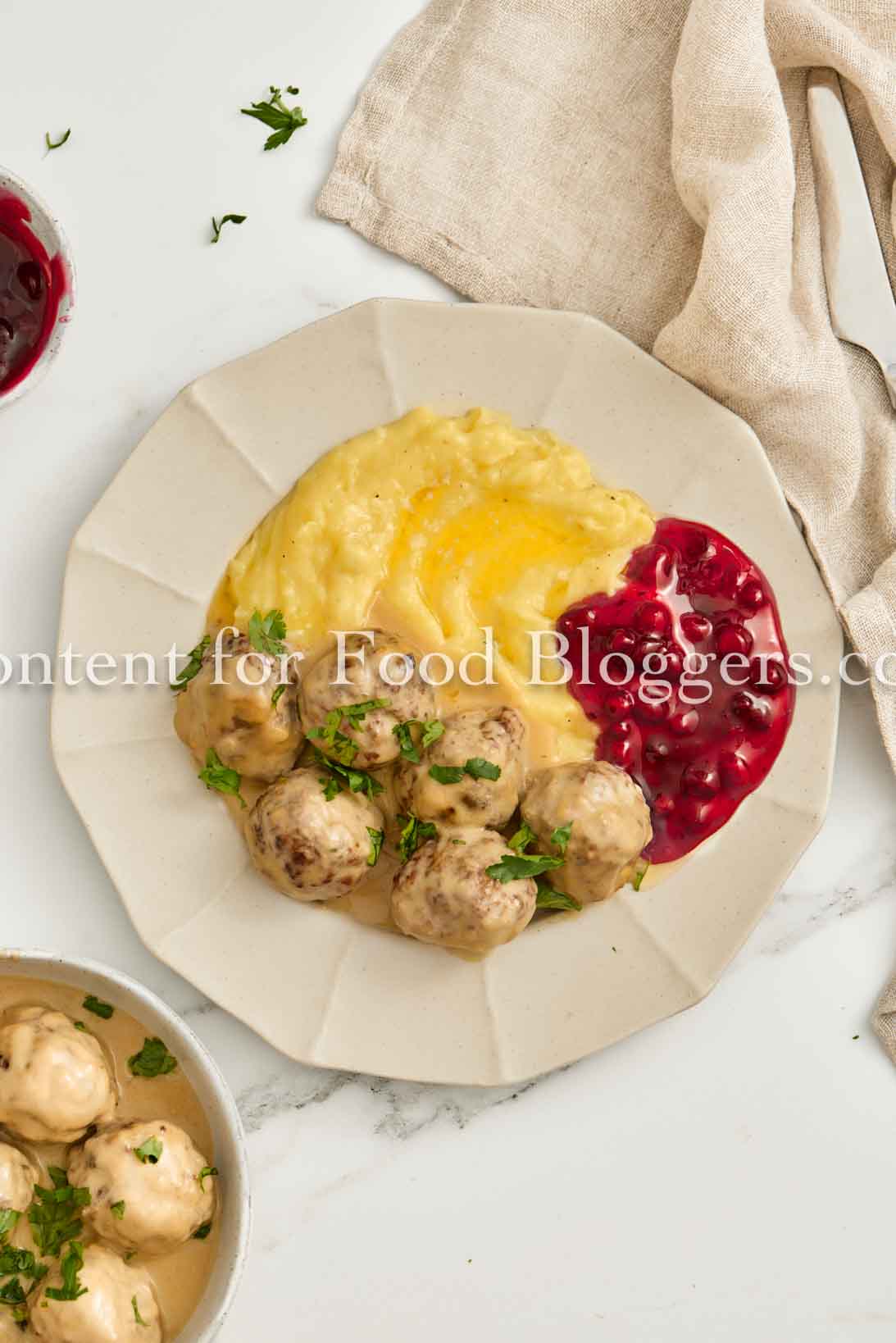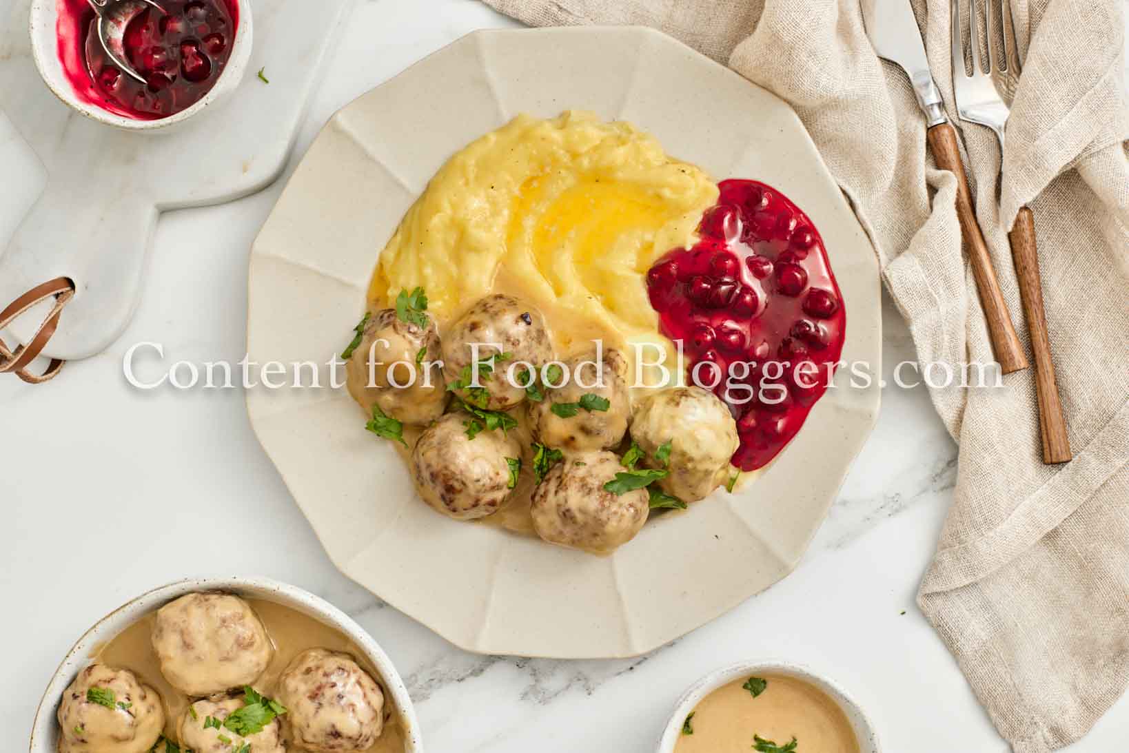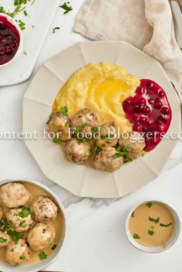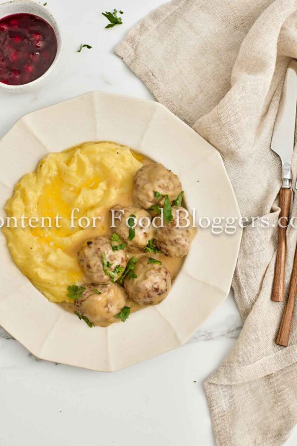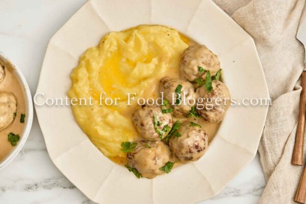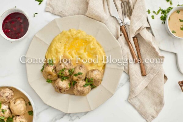 Bring the comforting flavors of Scandinavia to your blog with these Savory Swedish Meatballs. This exclusive recipe is a visual standout, featuring the rich contrast of creamy sauce, vibrant cranberry, and fluffy mashed potatoes. It is a high-performance asset for comfort food and family dinner niches, designed to drive massive engagement on Pinterest and Instagram with its professional, “modern-classic” aesthetic.