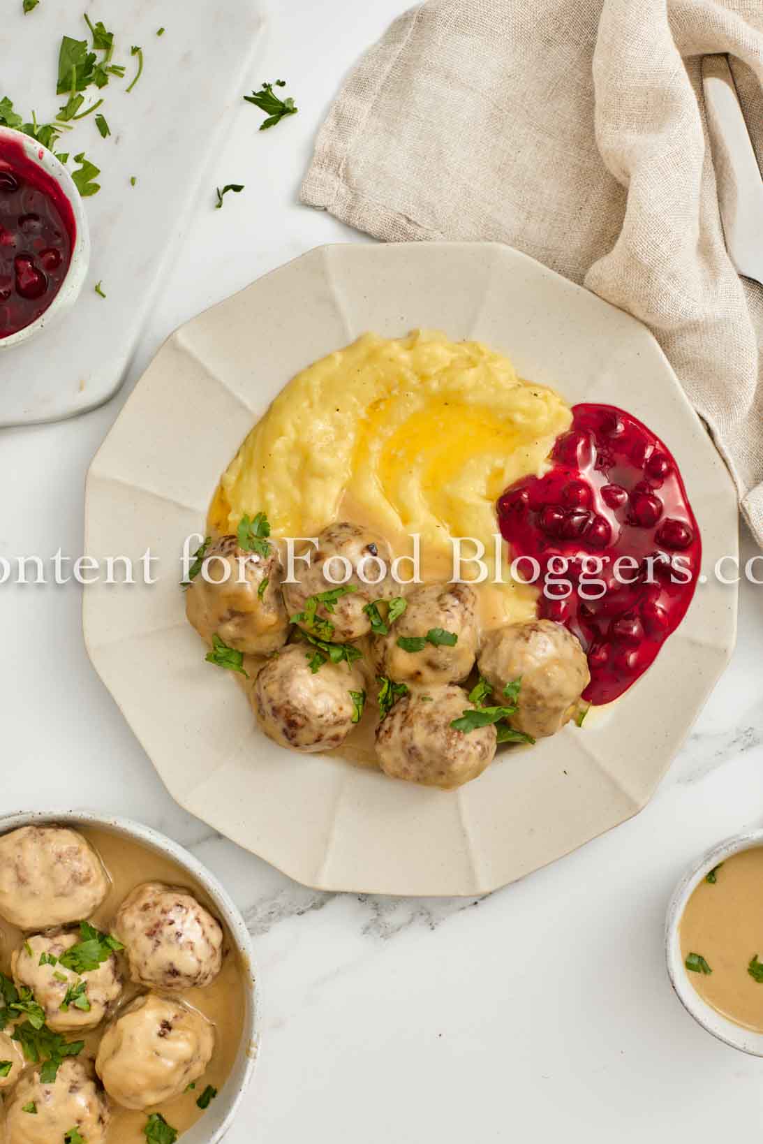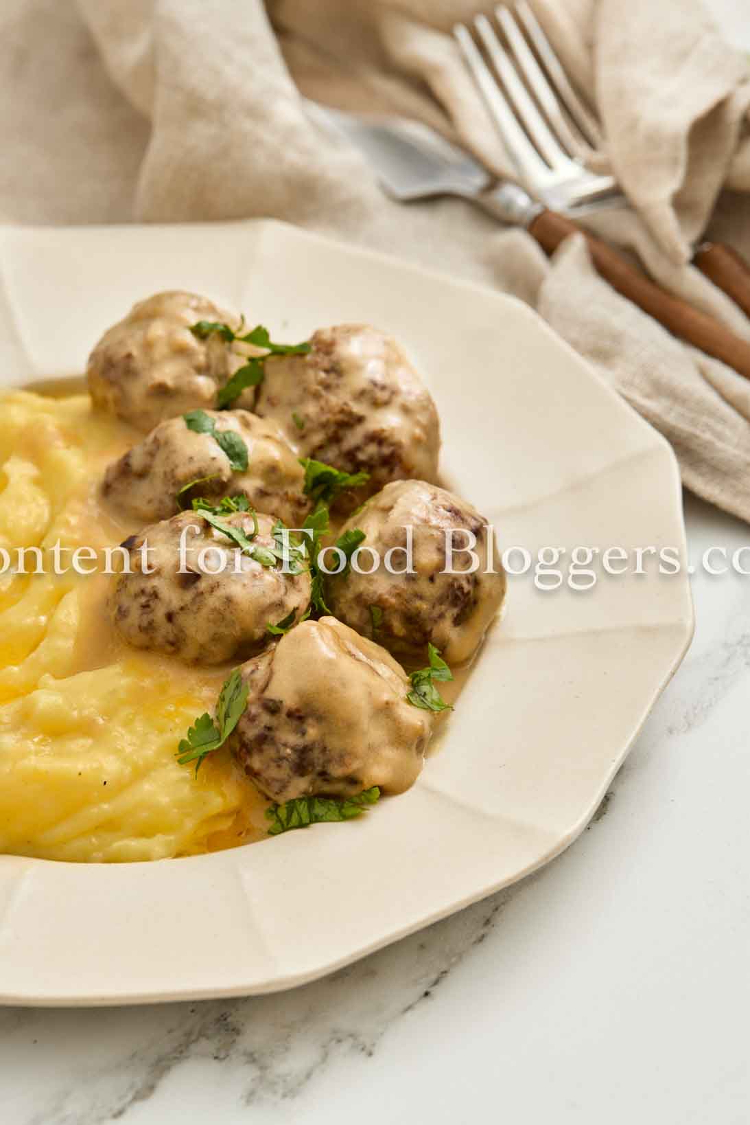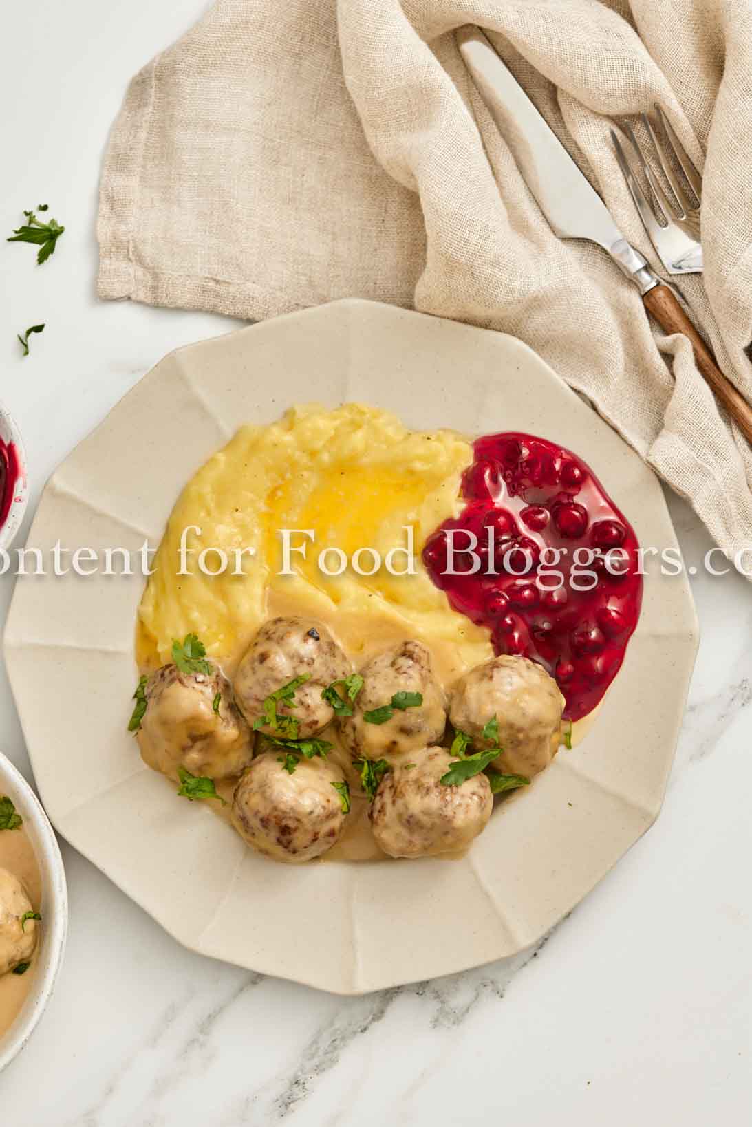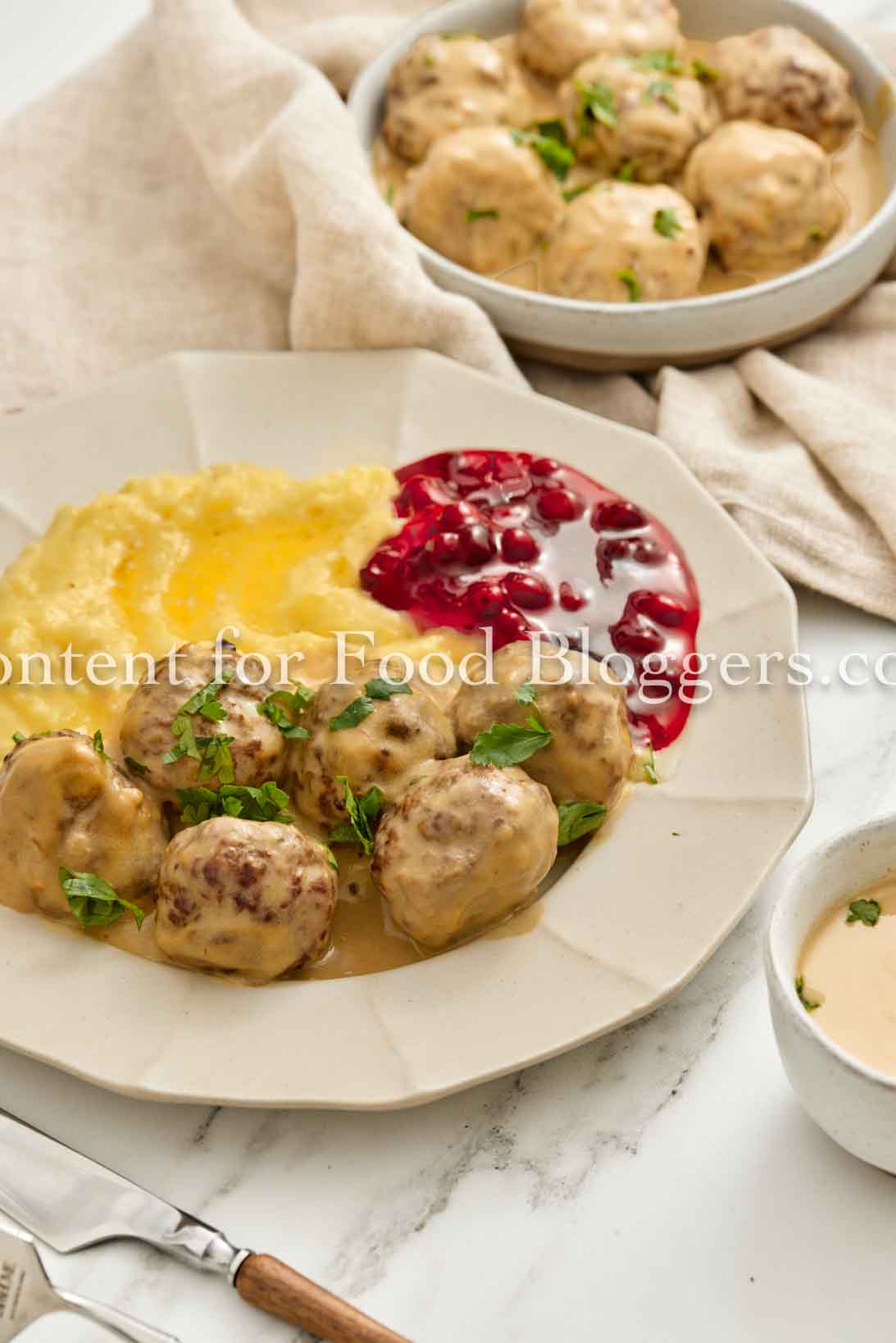 Bring the comforting flavors of Scandinavia to your blog with these Savory Swedish Meatballs. This exclusive recipe is a visual standout, featuring the rich contrast of creamy sauce, vibrant cranberry, and fluffy mashed potatoes. It is a high-performance asset for comfort food and family dinner niches, designed to drive massive engagement on Pinterest and Instagram with its professional, “modern-classic” aesthetic.