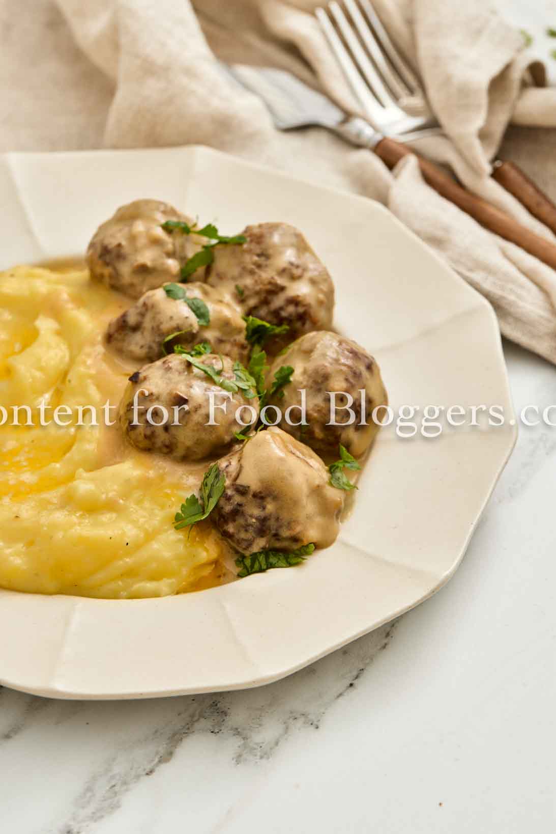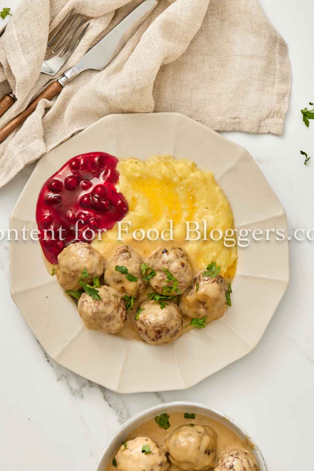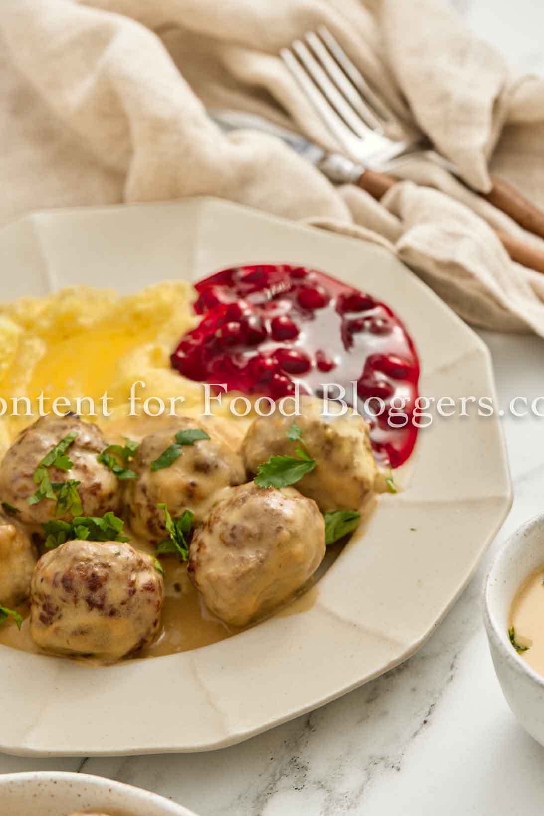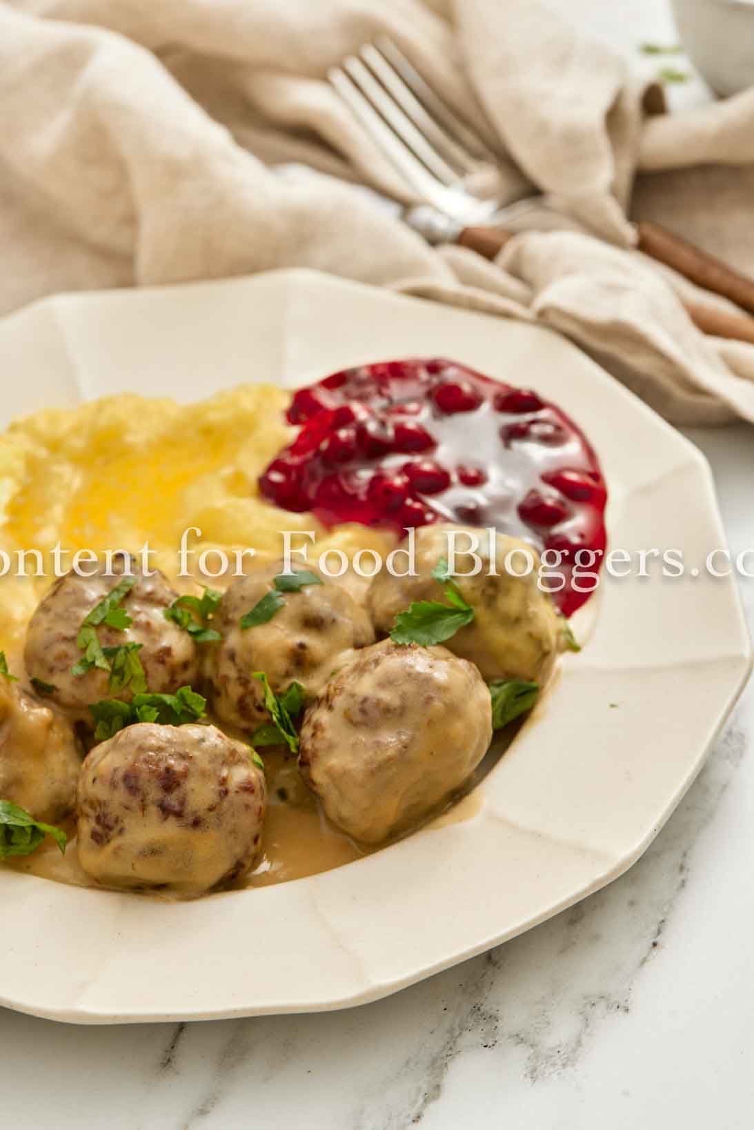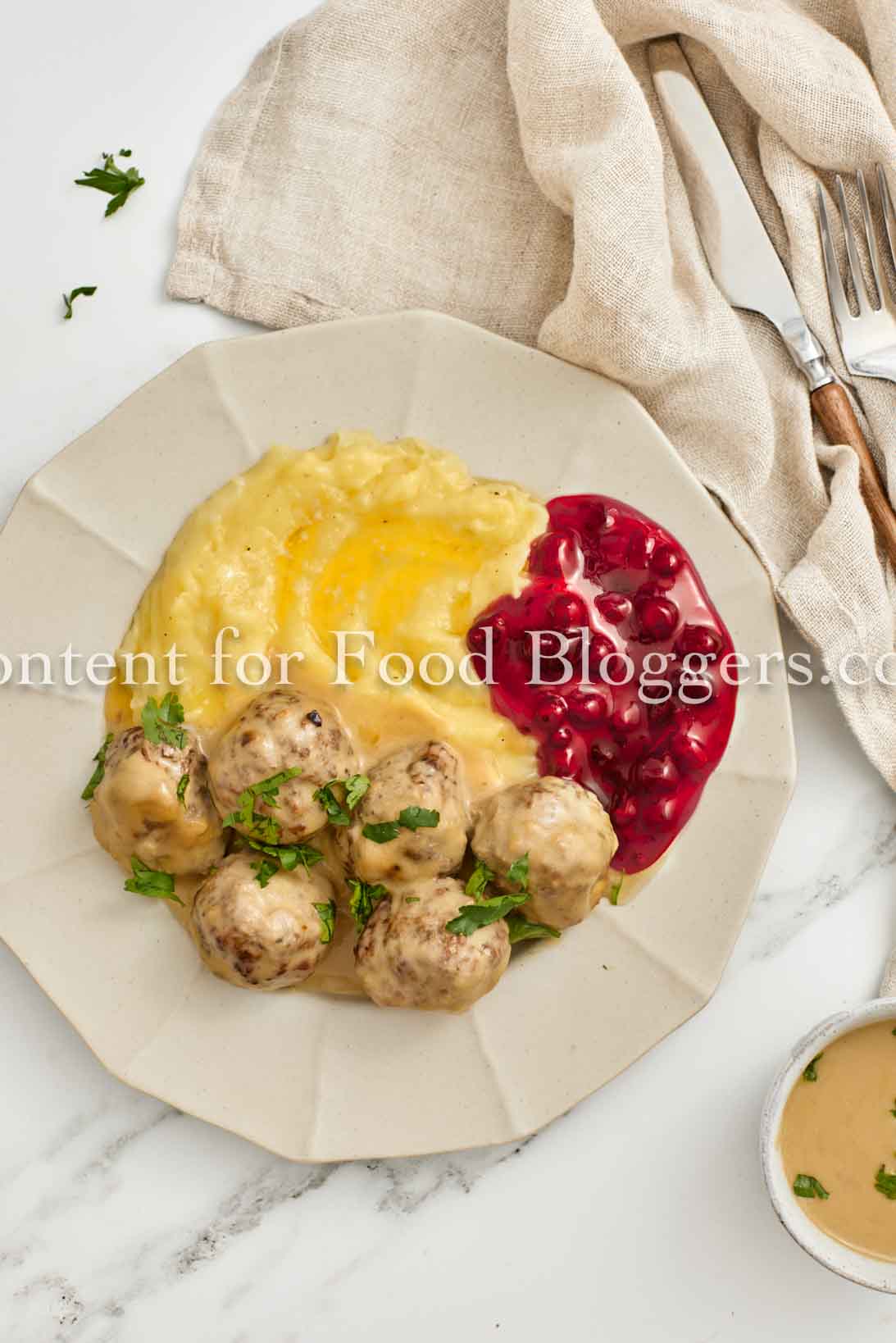 Bring the comforting flavors of Scandinavia to your blog with these Savory Swedish Meatballs. This exclusive recipe is a visual standout, featuring the rich contrast of creamy sauce, vibrant cranberry, and fluffy mashed potatoes. It is a high-performance asset for comfort food and family dinner niches, designed to drive massive engagement on Pinterest and Instagram with its professional, “modern-classic” aesthetic.
