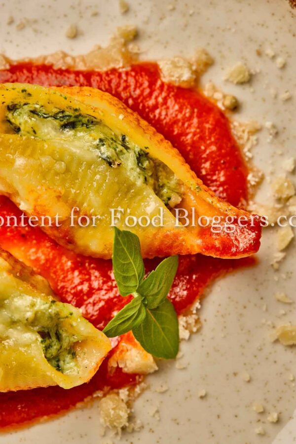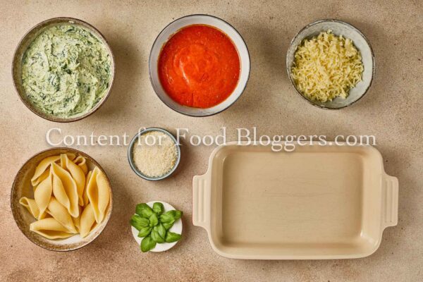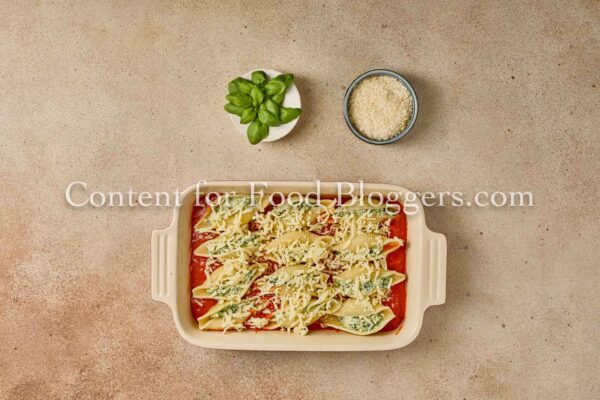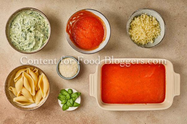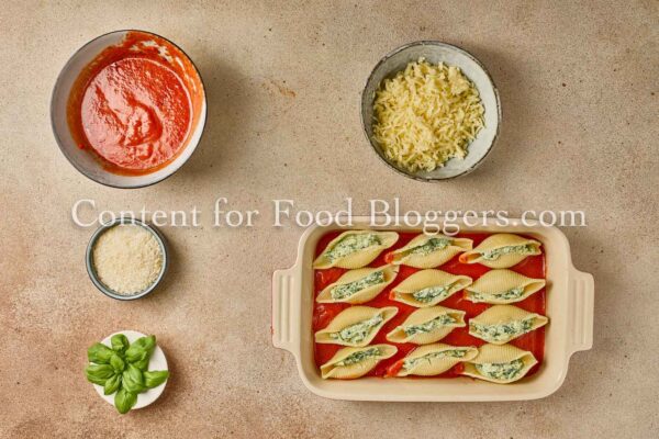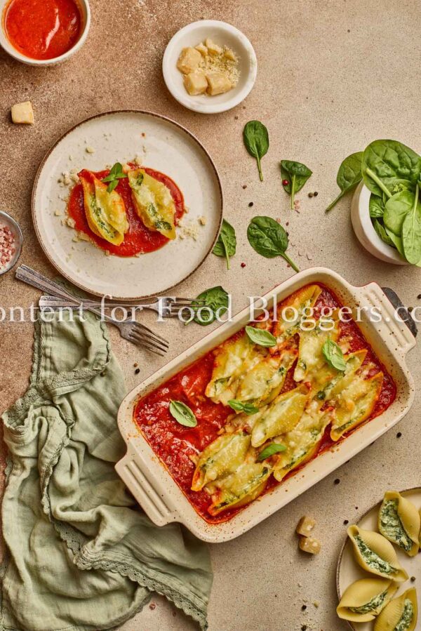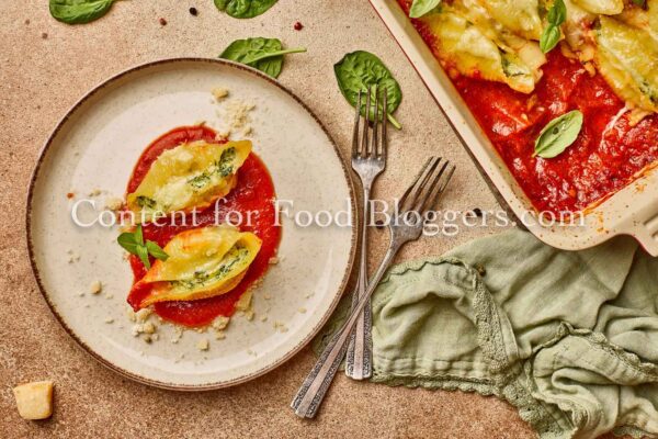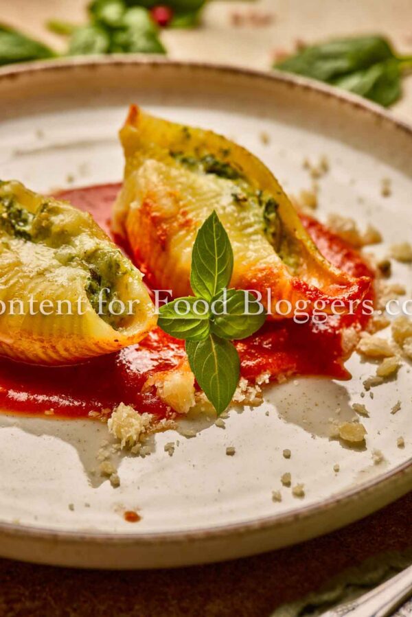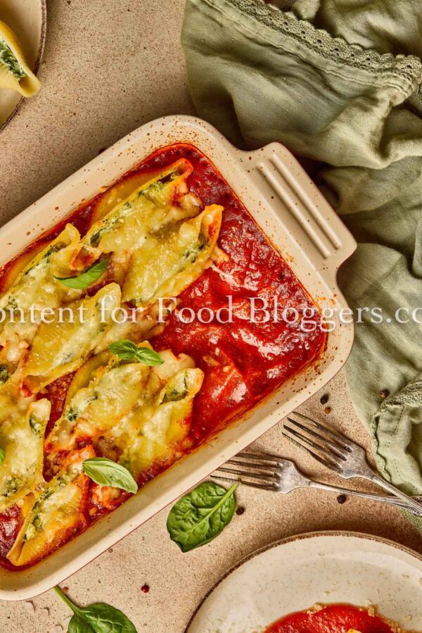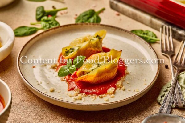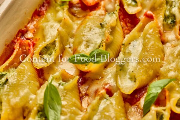 Classic baked stuffed shells filled with a creamy ricotta-spinach mixture, layered with marinara, and finished with a bubbly mozzarella-Parmesan topping. A comforting, crowd-friendly pasta dish that feels restaurant-worthy but simple to prep.
