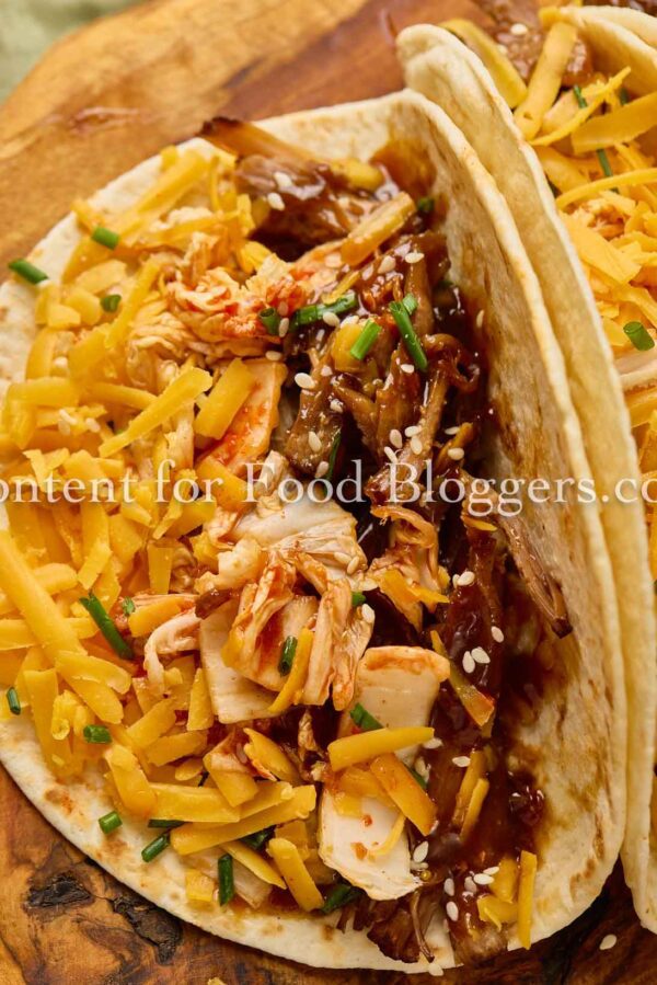 A bold twist on taco night! These Korean Pulled Pork Tacos combine crispy pork, tangy quick kimchi, and melty cheese — the perfect balance of smoky, spicy, and savory.