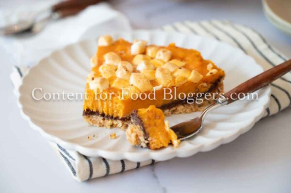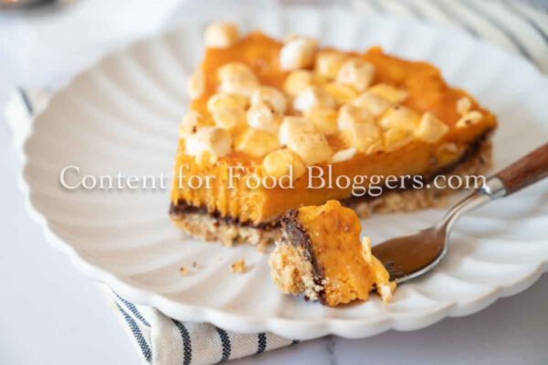 graham cracker crumbs, sugar, butter, dark chocolate, sweet potato, pumpkin, brown sugar, cream, eggs, cinnamon, nutmeg, vanilla, salt, marshmallows